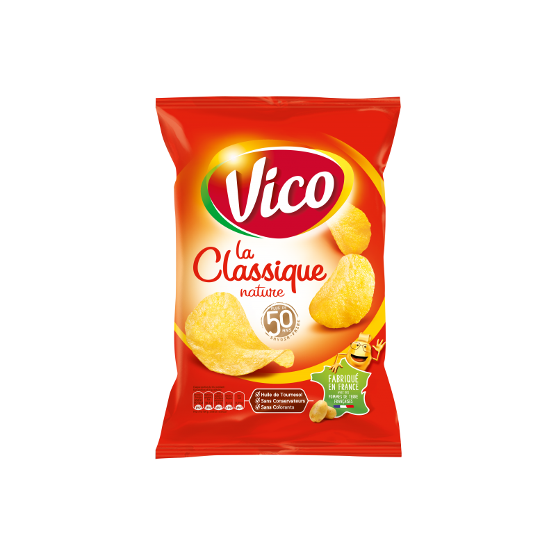 le paquet de 135 grammes, fabriqué en France avec des pommes de terre française.
